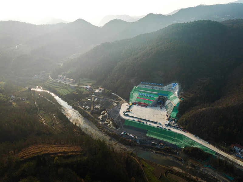 1月8日,在湖北省襄陽市保康縣馬良鎮(zhèn)拍攝的引江補漢工程輸水隧洞8號平洞施工現(xiàn)場。 新華社記者 肖藝九 攝