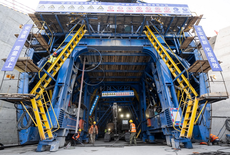 1月8日,在湖北省襄陽(yáng)市保康縣馬良鎮(zhèn)拍攝的引江補(bǔ)漢工程輸水隧洞8號(hào)平洞施工現(xiàn)場(chǎng)。 新華社記者 肖藝九 攝