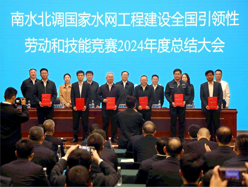 會議指出,南水北調是習近平總書記關心的“國之大事”、世紀工程、民生工程。引江補漢工程是落實習近平總書記關于推進南水北調后續工程高質量發展重要講話精神、加快構建國家水網主骨架和大動脈的重要標志性工程。在引江補漢工程建設現場開展南水北調國家水網建設勞動和技能競賽,體現了全國總工會對南水北調事業的重視和支持。競賽緊扣工程高質量建設、生態環境保護、職工職業技能,對標精準。競賽覆蓋面廣,27家單位和3000名一線工人參與,評選出60個突出貢獻集體和個人,起到了示范帶動作用。 會議強調,要全面學習貫徹黨的二十大和二十屆二中、三中全會精神,落實中共中央、國務院《關于深化產業工人隊伍建設改革的意見》要求,繼續廣泛深入持久開展勞動和技能競賽,以弘揚“三個精神”為主題,強化思想政治引領,匯聚職工建功立業的奮進力量;以落實企業主體責任為牽引,完善技能人才培養體系,造就一流產業技術工人隊伍;以創新競賽體制機制為途徑,推動競賽成績與評先樹優、晉級增收相結合,釋放職工勞動熱情和創造潛能;持續深化產業工人隊伍建設改革,為南水北調后續工程高質量發展注入強大動能。 會議要求,要把勞動和技能競賽作為激發參建職工建功立業豪情的有效載體,作為釋放參建職工創新創造潛能的重要支撐,作為推動產業工人隊伍建設改革的有力抓手,為工程建設提供有力支持和堅強保障。要堅持打造精品工程目標不動搖,以勞動競賽為紐帶,以步步精品鑄就“國之重器”。要堅持賦能人才培育目標不動搖,實現國家重大工程任務和領軍人才淬煉雙促進、雙豐收。要堅持激發創造活力目標不動搖,推動形成全員參與、人人爭先、處處創造的濃厚氛圍。 會議號召,全體參建單位和廣大建設者要以此次表彰為契機,對標先進,高質量推進南水北調后續工程建設,為國家水網建設再立新功。 會議向6家突出貢獻單位、21家突出貢獻集體、12個突出貢獻班組和21名突出貢獻個人授予了榮譽證書。中鐵十二局董事長、黃河勘測規劃設計公司引江補漢工程監理2標項目監理部安全管理部、中水十四局引江補漢工程土建施工及金結機電安裝8標項目經理部重機隊、江漢水網公司引江補漢工程建設管理二部副主任、總工程師王東來分別代表突出貢獻單位、突出貢獻集體、突出貢獻班組和突出貢獻個人發言。