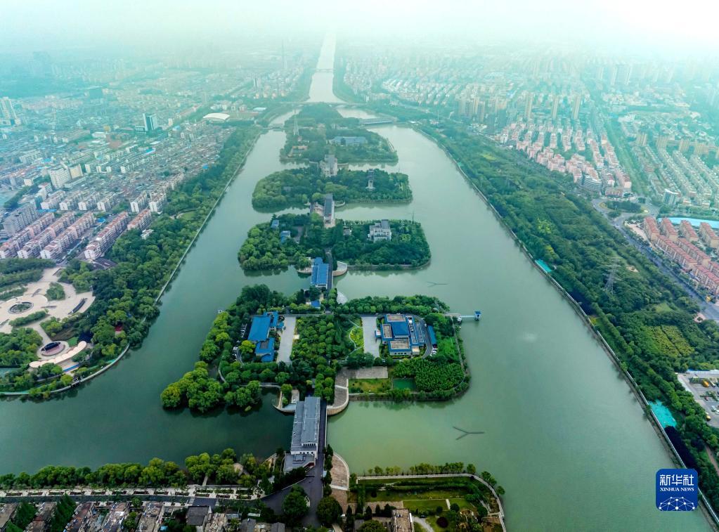 這是6月1日拍攝的位于江蘇省揚州市江都區的南水北調東線源頭江都水利樞紐(無人機照片)。